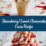 Enjoy a delightful and visually stunning Strawberry Crunch Cheesecake Cones recipe that combines creamy no-bake cheesecake filling with crispy waffle cones, sweet melted white chocolate, and a vibrant strawberry crunch topping. Perfect for a refreshing dessert that’s easy to assemble and sure to impress.