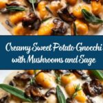 This Sweet Potato Gnocchi with Creamy Mushrooms and Crispy Sage recipe combines tender, fluffy gnocchi made from roasted sweet potatoes with a luscious creamy mushroom sauce and nutty brown butter sage. The gnocchi are first boiled then pan-fried to a golden crisp, creating a delightful contrast in textures. Finished with grated Parmesan and crispy sage, this dish offers a comforting yet elegant vegetarian meal perfect for dinner or special occasions.