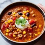 This hearty and flavorful Taco Soup recipe combines ground beef, beans, corn, tomatoes, and a blend of spices to create a delicious, comforting meal perfect for any day of the week. Ready in just 35 minutes, it’s an easy one-pot dish ideal for families or meal prepping. Top it off with cheese, sour cream, and crunchy tortilla chips for an authentic taco experience in a bowl.