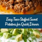 Taco Stuffed Sweet Potatoes are a delightful fusion of savory and sweet flavors, featuring tender microwave-cooked sweet potatoes filled with a spicy ground beef mixture. Topped with melted mozzarella, fresh diced tomatoes, creamy mashed avocado, and a dollop of sour cream, this meal is a perfect quick and satisfying dinner option for four.