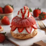 Delight in these indulgent Triple Chocolate Choux Buns, a classic French dessert reinvented with luscious dark chocolate cream and a rich chocolate ganache topping. Light and airy choux pastry shells are filled with smooth chocolate cream made from whipped heavy cream and melted dark chocolate, then generously topped with a silky semi-sweet chocolate ganache and dusted with cocoa powder. Perfectly golden and irresistibly chocolatey, these cream puffs make an elegant treat for any special occasion or chocolate lover’s craving.