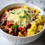 A hearty and flavorful Veggie Chili Mac Cornbread recipe combining tender elbow macaroni, mixed beans, vibrant bell peppers, spices, and a crunchy cornbread topping. This comforting dish is perfect for a family-friendly, meatless meal that’s packed with protein, fiber, and bold southwestern flavors.